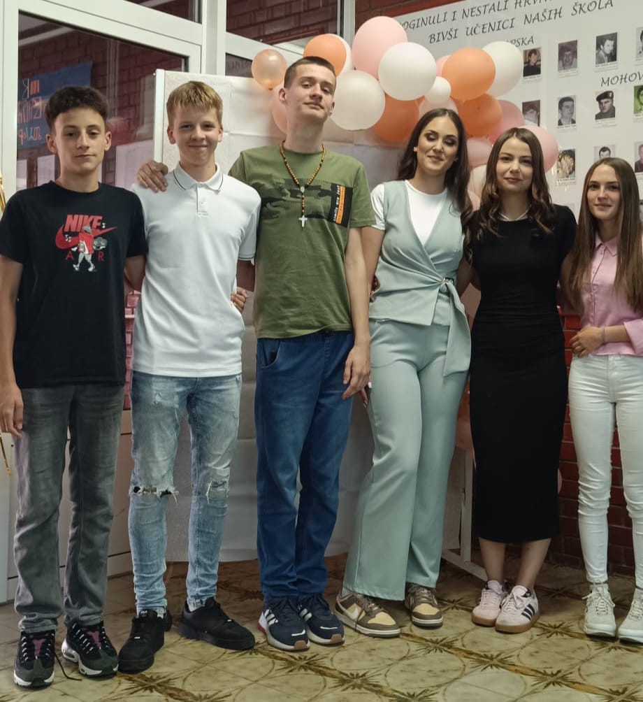 Naši dragi osmaši završili su svoje osmogodišnje školovanje. Godine kao da su proletjele. Uloženo je puno truda, rada, bilo je radosti, ponekad i suza, ali sve je nekako brzo prošlo. Tim povodom organizirali su, zajedno sa svojom razrednicom Marijanom Ivanković, svečanu večeru kojom su rekli HVALA na svemu što su im oni pružili. Uz prigodne riječi i poklon razrednici završena je jedna faza života, dok će se od jeseni susretati s nekim novim izazovima. Mi im želimo dobro zdravlje, da budu vrijedni, uporni, hrabri te da ih na njihovom putu prati Božji blagoslov. Na samom kraju, u nedjelju 15. lipnja, proslavljena je i sv. Misa kojom smo Bogu zahvalili za sva primljena dobra u ovoj školskoj godini, a kako je sve to izgledalo, pogledajte na slijedećim fotografijama.