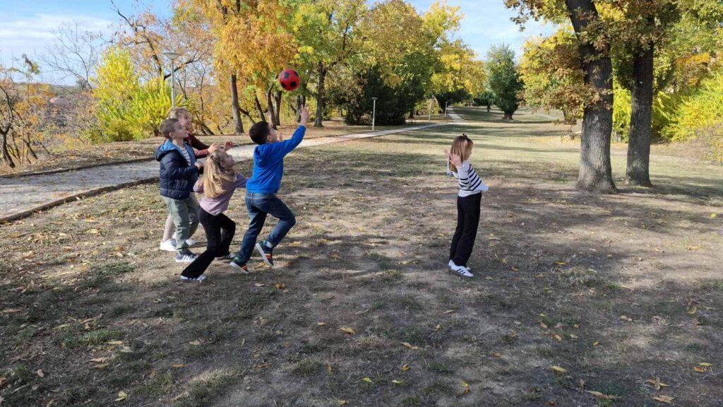 Nakon crkve i samostana krenuli su u park gdje su ponovili sadržaje o jeseni iz Prirode i društva te riješili listiće , na kraju su  igrali  različite igre loptom  i uživali u sunčanom jesenskom danu.