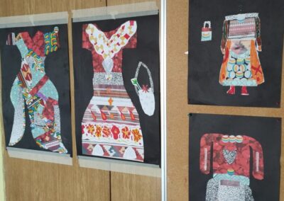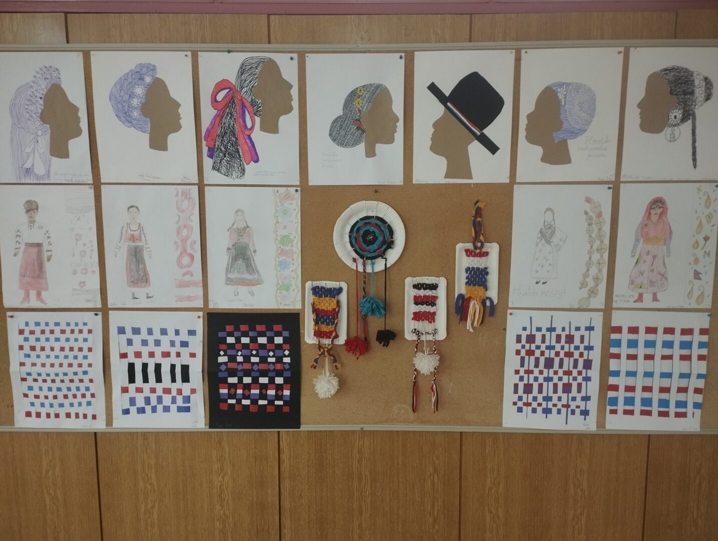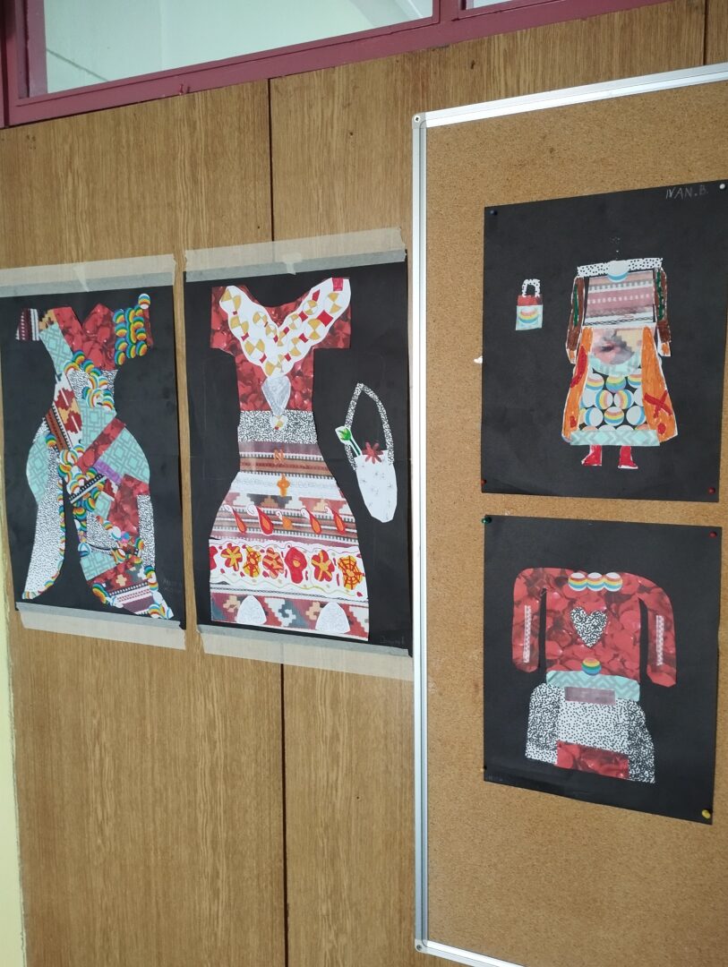 Učenici šestog razreda su olovkama u boji crtali nošnje različitih naroda te njihove prepoznatljive ornamente a nakon toga u tehnici kolaža stvarali dizajn moderne odjeće inspirirane tradicionalnim ornamentom. Od papira u boji preplitali su tkani ornament a u tehnici tuša crtali portrete ljudi različitih etničkih grupa.