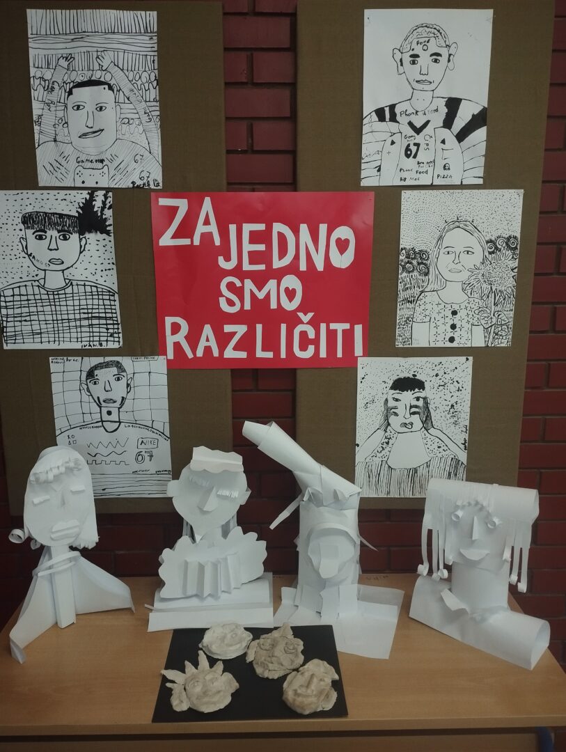 Cijeli smo projekt zaključili izložbom učeničkih radova koji krase zidove naše škole i svojim tihim, vizualnim jezikom pričaju o ljepoti zajedništva u različitosti, o dobroti i skladu, te stvaraju ozračje prihvaćanja i tolerancije među ljudima različitih nacionalnih zajednica i kultura.