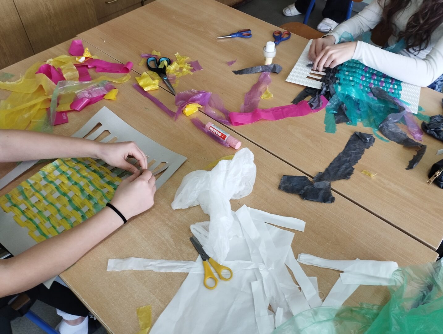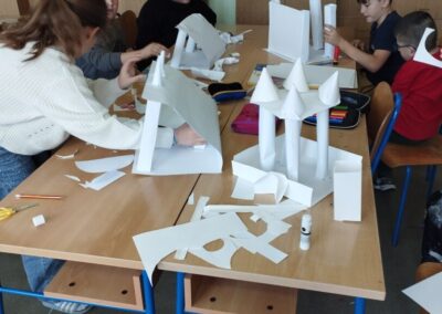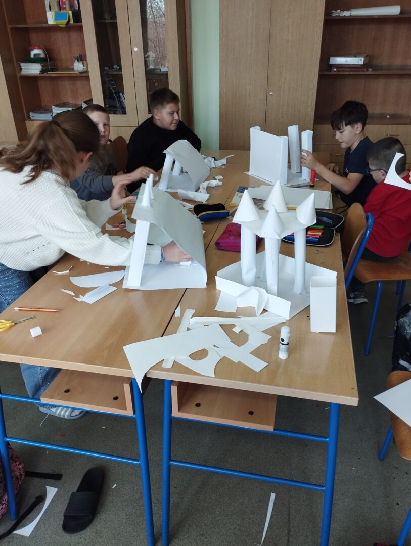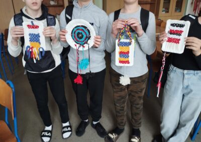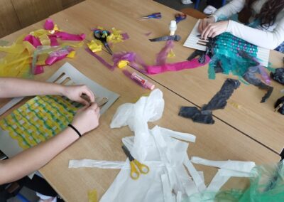 Učenici sedmog razreda naučili su tradicionalnu tehniku tkanja od vrpca reciklirane tkanine u boji, te osvijestili simboliku boja različitih naroda. Zajedničkim radom crtežom su prikazali idealan grad u kojem se spajaju arhitektonski stilovi iz različitih kultura i vjerskih skupina. U kiparskim tehnikama papir plastike i glinamola oblikovali su portrete ljudi različitih kultura.